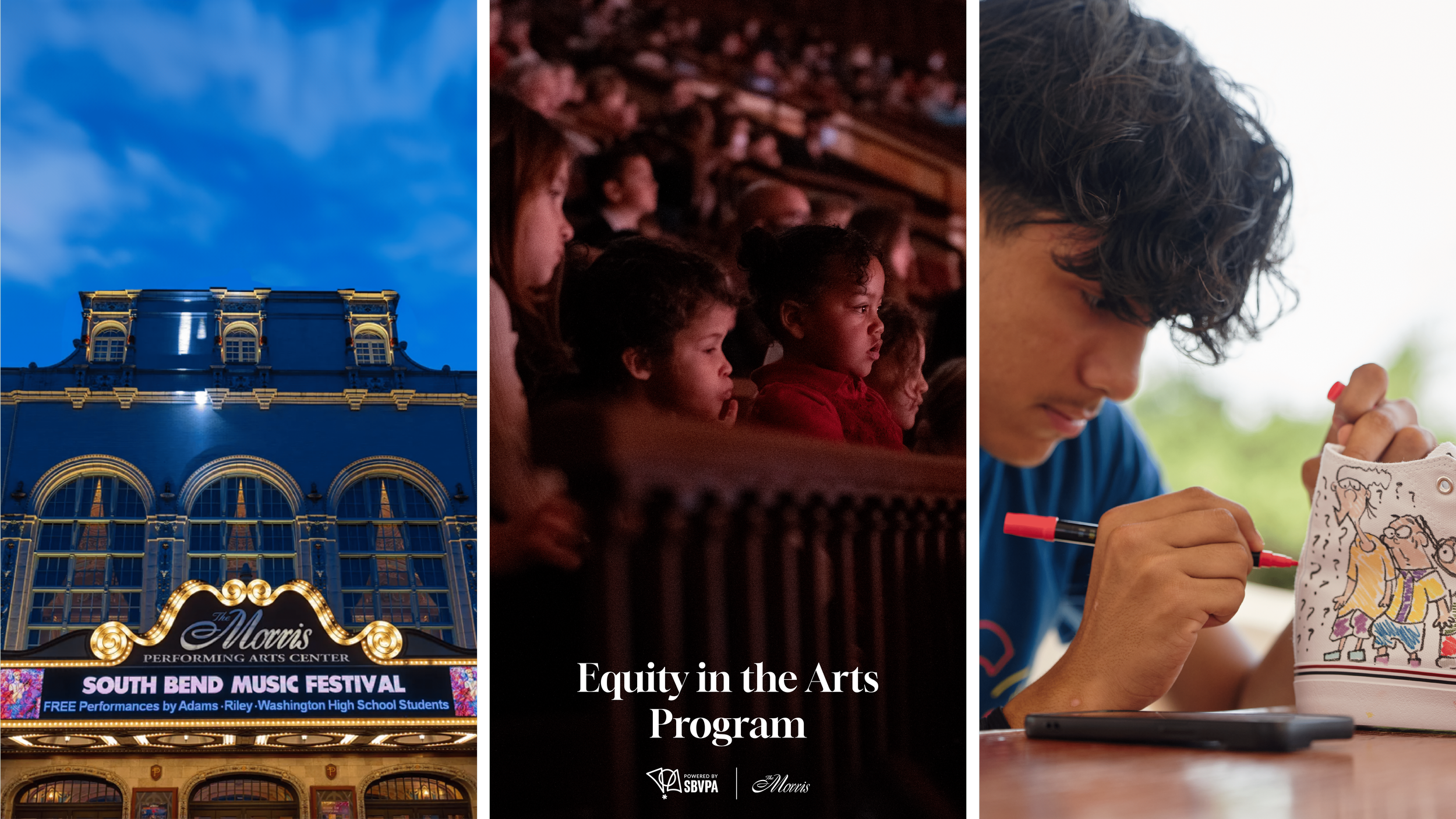 Equity in the Arts is an initiative led by South Bend Venues Parks and Arts with the Venues Division. The program's purpose is to remove financial and societal barriers to families and students within the community while highlighting the 100-year-old historic MorrisPerforming Arts Center. This sustainable model nurtures creativity, deepens civic identity, and serves as a regional blueprint for equity-driven arts initiatives in parks and recreation.